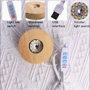 LED USB Powered Wooden Display Base 6 cm