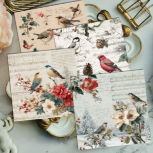 SET OF4 6×6″ winter bird decorative paper