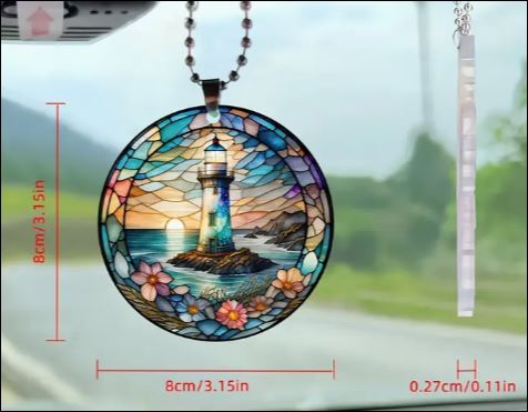 Colorful Lighthouse Pattern 2D Acrylic Car Decoration Pendant, Car Rearview Mirror Decoration Pendant, Bag And Keychain Accessories