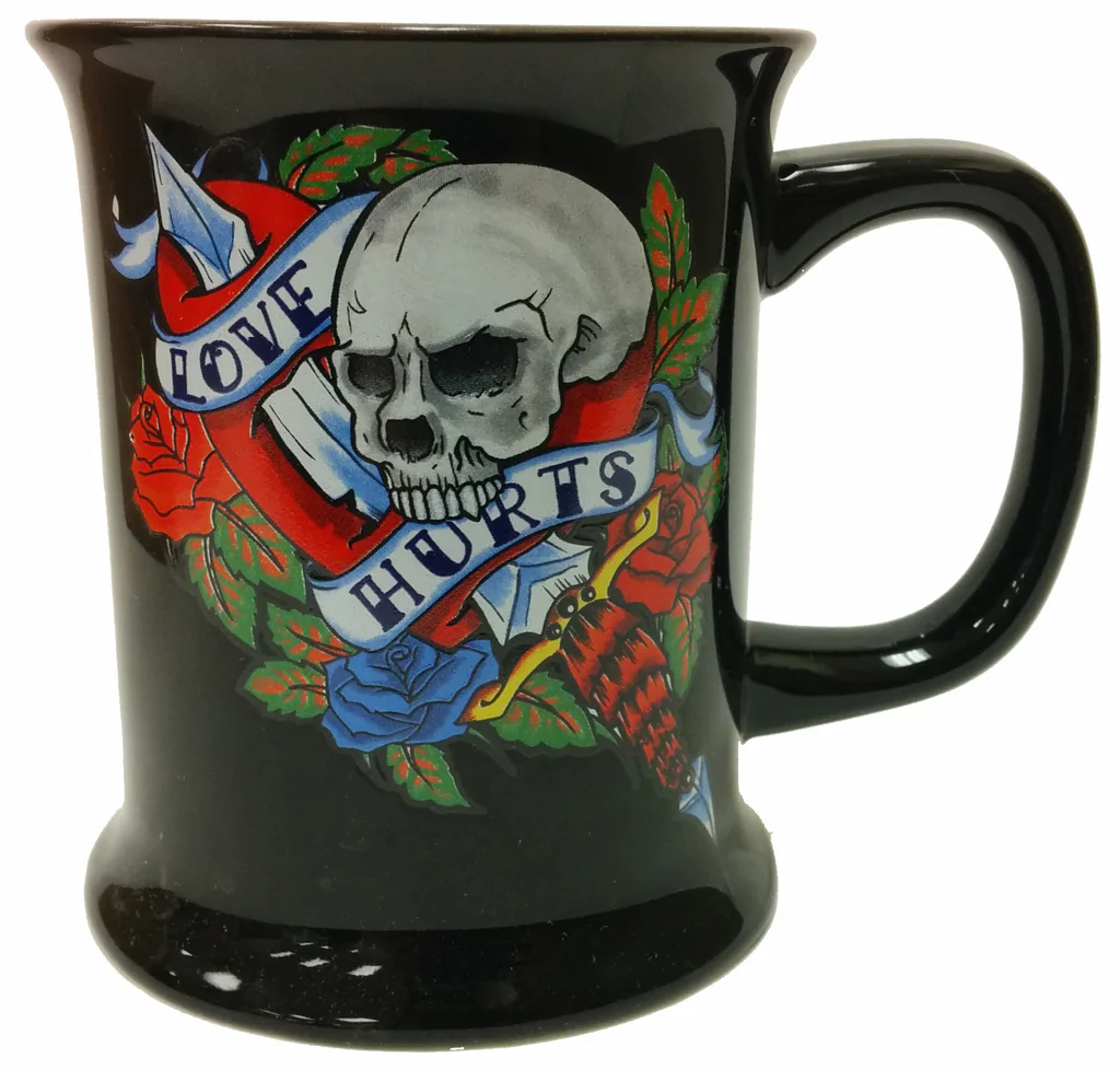 SKU: SCR070-1 Categories: Kitchen and Dining, Mugs/Cups Tags: Coffee, love, mug, skull, tattoo