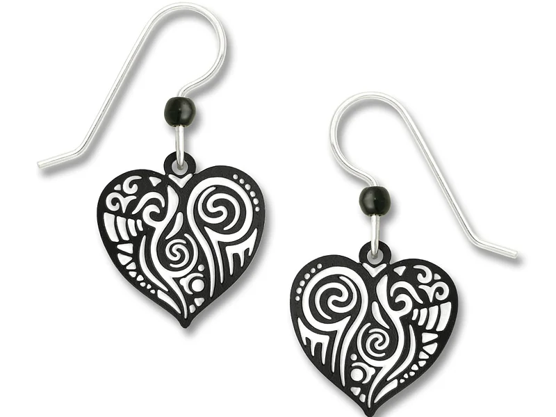 Black & white ‘Maori’ pattern heart Earrings