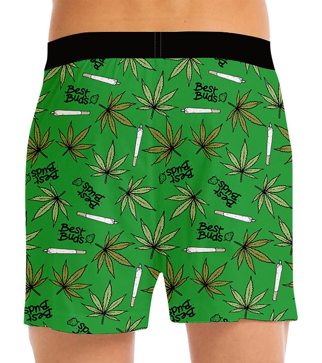 Fun comfortable boxer briefs with an all-over marijuana leaves and joint print with BEST BUDS sentiment. The elastic band on this men’s boxer briefs conforms to the human body design, makes this men’s underwear comfortable to wear all day long without experiencing tight or pulling. Supportive elastic waistband with Yo & Co Brand logo. 95% Cotton, 5% Spandex.