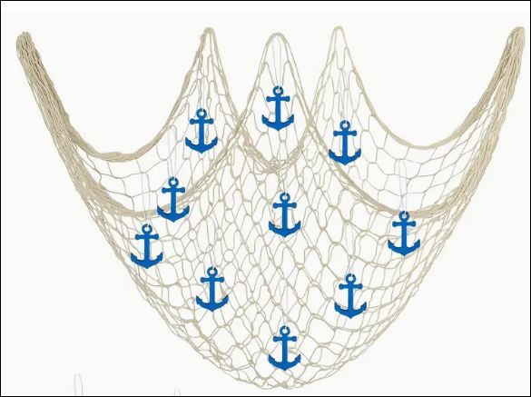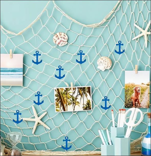 Tags: 39.3 X 39 .3 .3, anchors, fish net, Nautical, wall decor