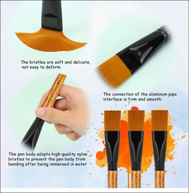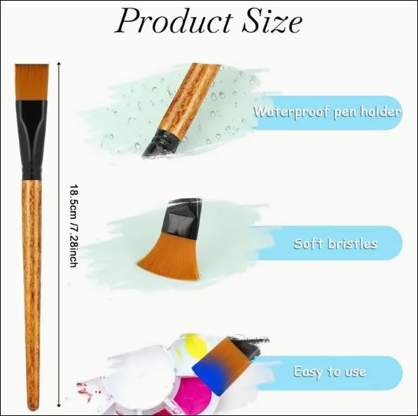 Home / Misc / Crafting supplies / Flat paint Brushes 3/4 inches Flat paint Brushes 3/4 inches$1.99 Weight: .25kg 6 in stock Flat paint Brushes 3/4 inches quantity Add to cart SKU: EXT4444 Categories: Crafting supplies, Misc Tags: fan, paint brush Description Additional information Description Nylon Bristles for Watercolor, Acrylic, and Painting Professional Fan Head Brushes for Artists Additional information Weight .25 kg