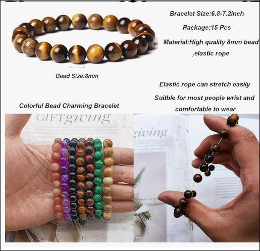 - Stretch Bead Bracelet:Round bead size is 8mm, 8mm bracelet length is about 6.8 inches to 7.2 inches, with elastic rope comfortable and easy to wear.
