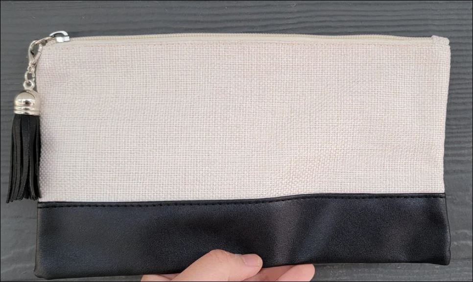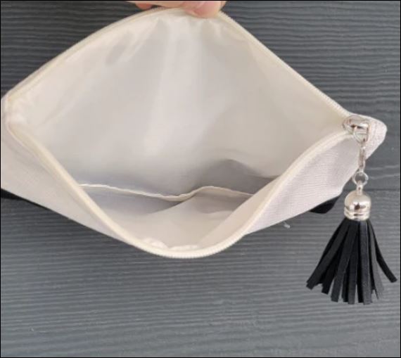 blank Make-up Canvas purse with faux leather bottom with tassel(for sublimation ,decoupage, etc)