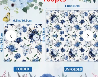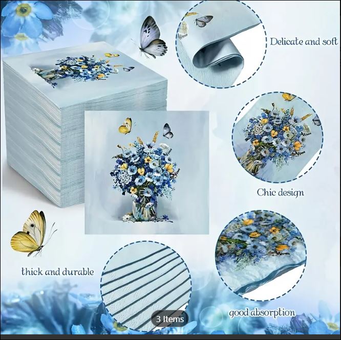 Home / Kitchen and Dining / Paper Napkins / Napkin 20 pc Napkin 20 pc$5.99 3 in stock Napkin 20 pc quantity Add to cart SKU: EXT4653 Categories: Kitchen and Dining, Paper Napkins Tags: 6.5 X 6.5 in, blue floral, napkin Description Description 6.5 X 6.5 inches Blue Floral x 2 available Blue Floral Bouquet X 1 available oceanlife x1