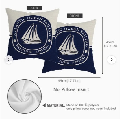 Home / Decor / Miscellaneous Decor / Nautical Pillow covers assorted Nautical Pillow covers assorted$10.99 Weight: .3kg 8 in stock Nautical Pillow covers assorted quantity Add to cart SKU: EXT919 Categories: Miscellaneous Decor, Nautical, Pillows/Covers Tags: Anchor, pillow covers. nautical, sailboat, ship wheel Additional information Additional information Weight .3 kg