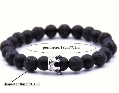 Vintage Lava stone beaded bracelet -black with gold crown