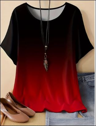 Plus Size Gradient Color Women’s Casual Crew Neck Short Sleeve T-Shirt for Spring & Summer